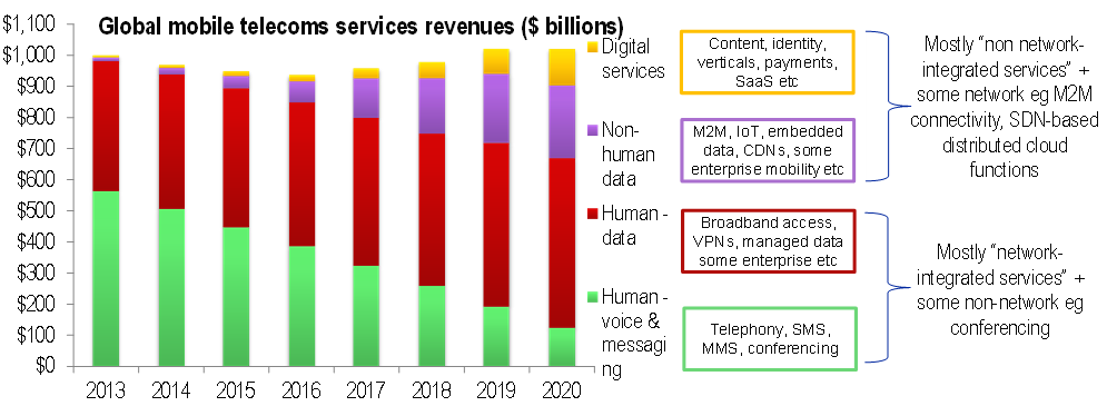 Given all these uncertainties, it may be that either network investments get slowed down – or else consolidation, government subsidy or other top-level initiatives are needed to stimulate them. On the other hand, it could be the case that reduced costs of capex and opex – perhaps through outsourcing, sharing or software-based platforms, or even open-source technology – make the numbers work out well, even for raw connectivity. Certainly, the last few years have seen rising expenditure by end-users on mobile broadband, even if it has also contributed to the erosion of legacy services such as telephony and SMS, by enabling more modern/cheaper rivals. We have also seen a shift to lower-cost network equipment and software suppliers, and an emphasis for “off the shelf” components, or open interfaces, to reduce lock-in and encourage competition.