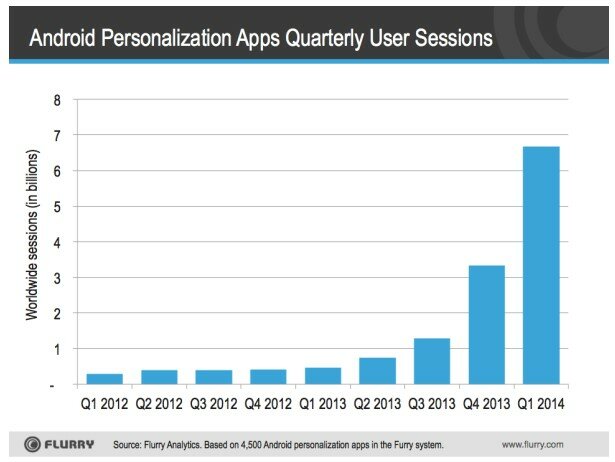 The concept of a customizable home screen is not new but with advancements in smartphone operating systems and device displays this customization is starting to take off. A recent report by Flurry found that there were over 4,500 of these launcher-type apps and that launcher usage in Q1 2014 was greater than the total for all of 2013.